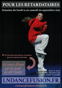 ❌ Il y aura également des permanences pour les nouveaux et les anciens adhérents : mardi 2 septembre, mercredi 3 septembre, jeudi 4 septembre de 17h à 20h à la salle de danse LN Dance Fusion et sur le FORUM des associations le samedi 6 septembre 2025 de 10h à 18h (démonstration LNDF 16h30).